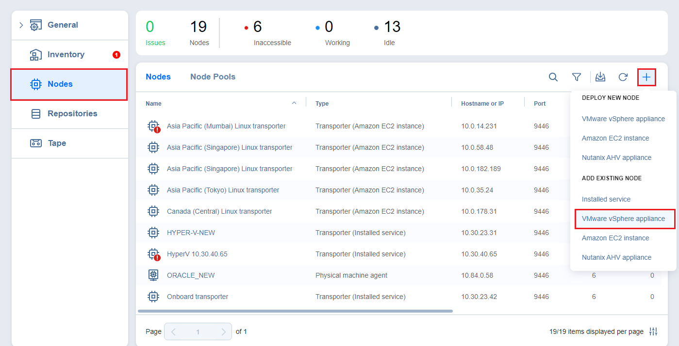 Click Add. The node is added to the product and can be used for backup, replication, and recovery jobs.