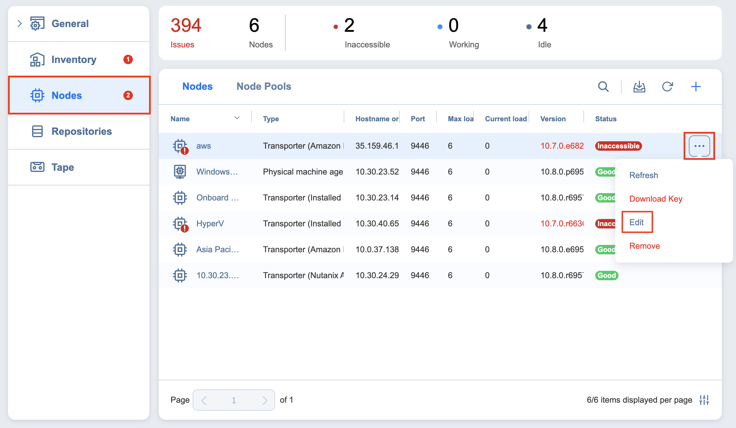 2. Go to the Nodes tab and hover over the node you would like to edit.