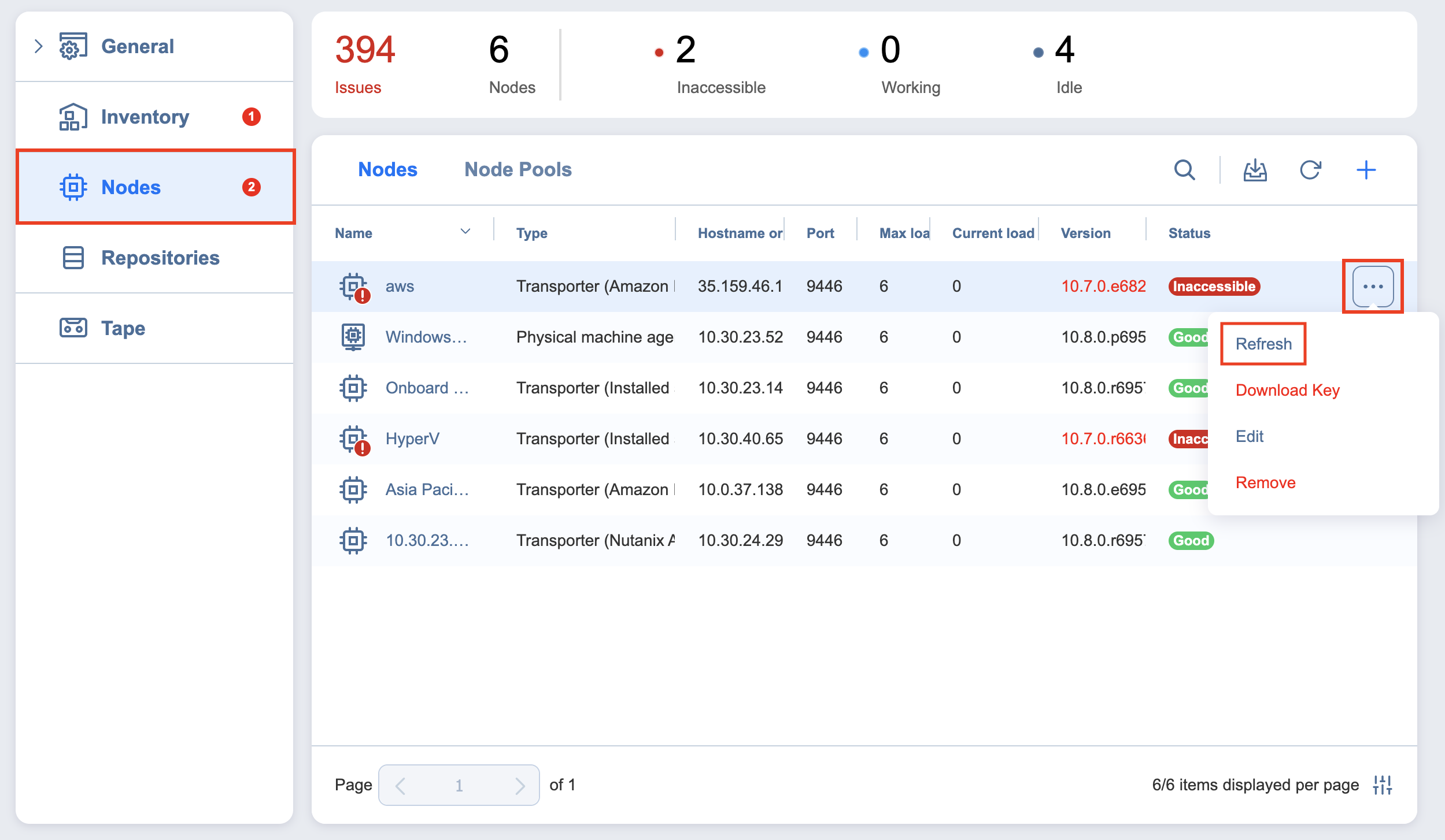 By default, NAKIVO Backup & Replication refreshes the information about Transporters every hour. During the refreshing process, the product collects all the required information about all transporters. Only one Transporter can be refreshed at a time. If you have more than one Transporter, all others will remain in the queue until they are able to be refreshed.