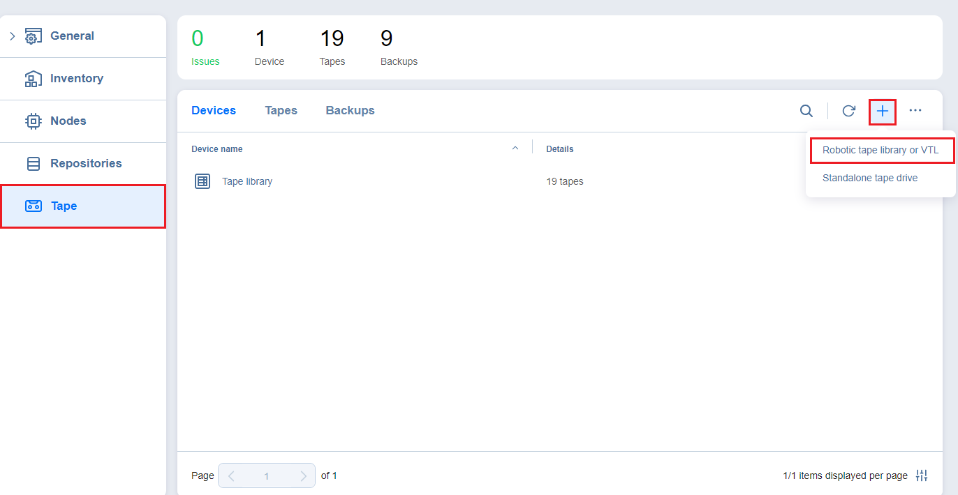 2. Click Save to start adding the tape library to NAKIVO Backup & Replication. After successful addition, the tape library will become available in the Devices tab.