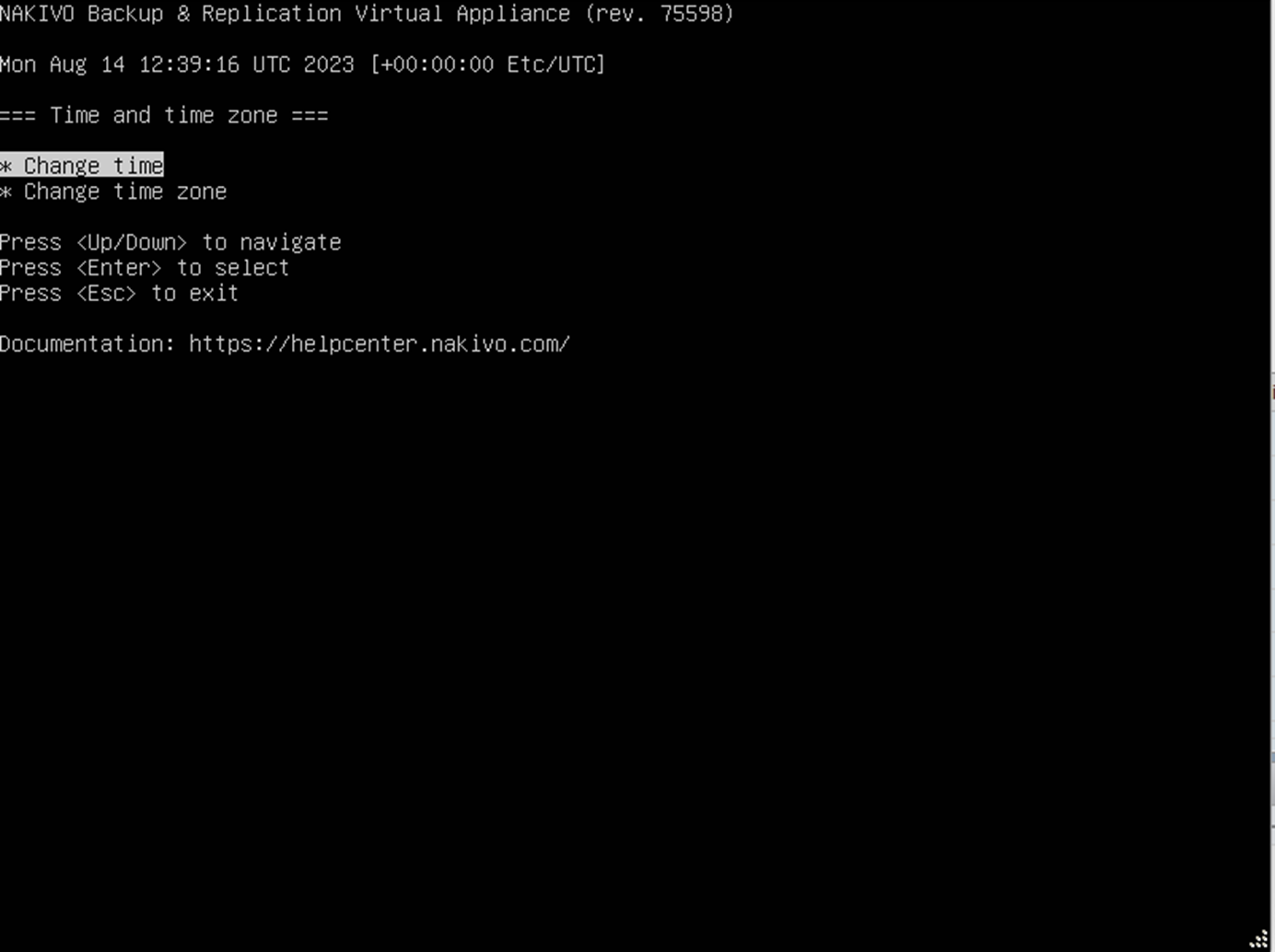 In this screen menu, you can select between two options, Change time and Change time zone.